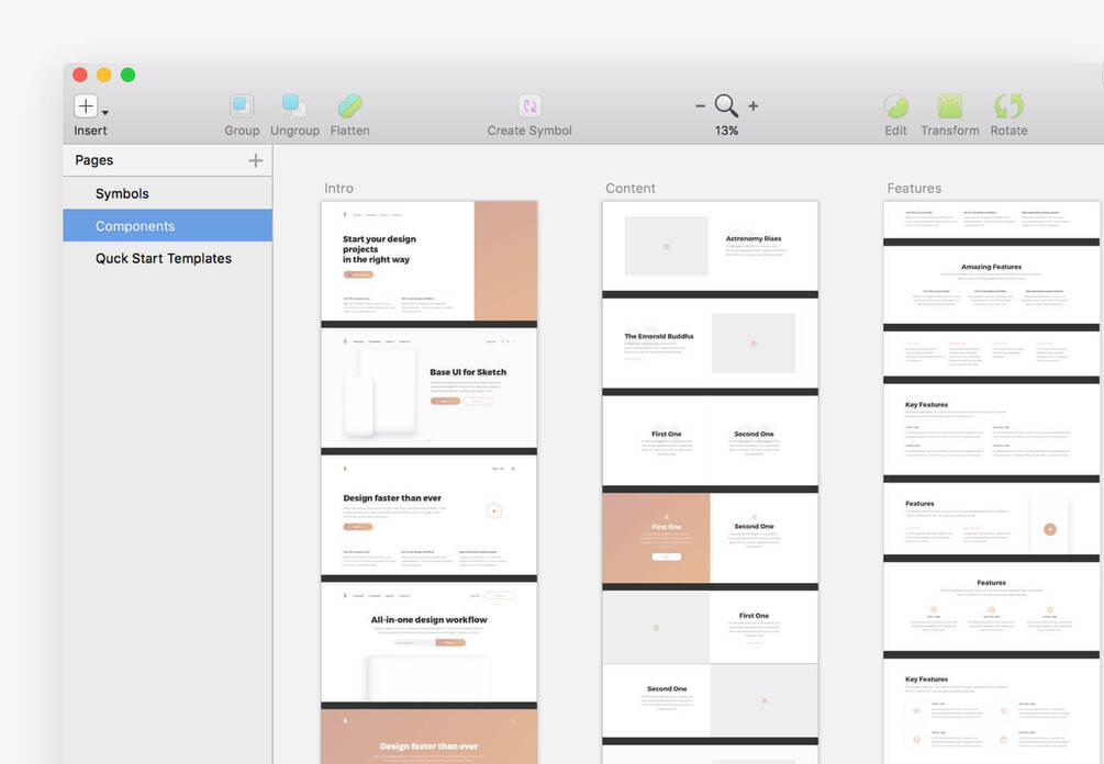 Base UI is a Sketch-based design system consisting of nesting symbols and styles. It’s a massive kit that contains more than 180 screens and has powerful customization capabilities.