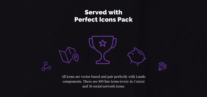 UI Kit comes with perfect 156 icons pack. All icons are vector based and pair perfectly with Lando components.